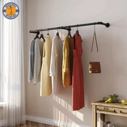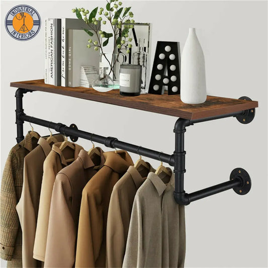 Industrial Pipe Clothing Rack Wall Mounted Wood Shelf Display Rack
