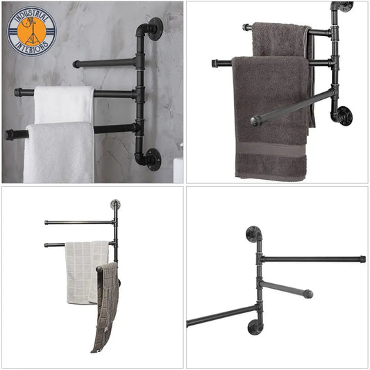 Industrial Rail Arm Wall Swivel Towel Hanging Shelf