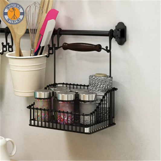 Kitchen Storage Retro Basket Spice Hanging Shelf Organizer