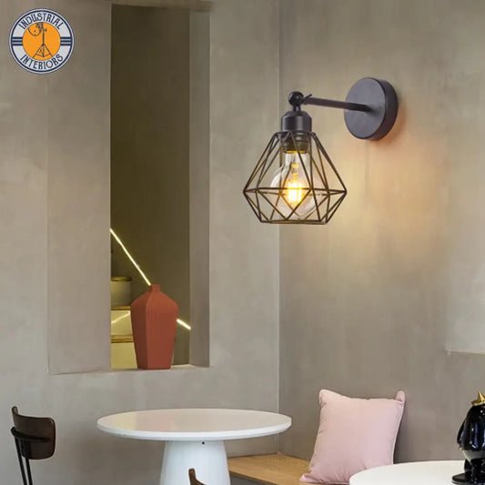 Industrial Retro Wall Light Fixture - Vintage Glass Lampshade