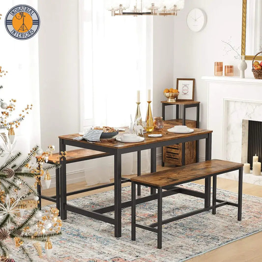 Industrial 4-Bulb Hanging Light with Wooden Beams
